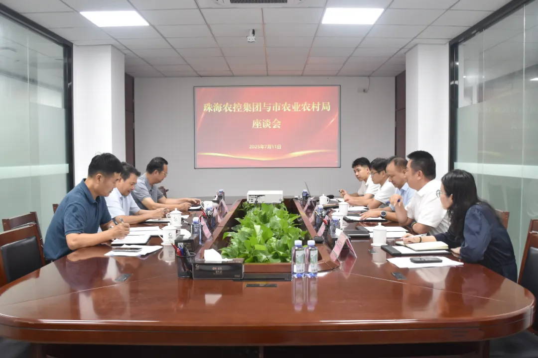 2025年7月11日,珠海市农业农村局党组副书记、市委农办常务副主任、市乡村振兴局常务副局长郑焕松一行到珠海农控集团开展联系服务与调研指导。农控集团党委副书记、总经理冯能斌,副总经理王春锦参加调研座谈。